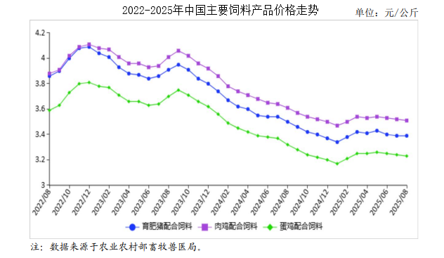 中商情報網(wǎng)訊:2025年8月,主要飼料產(chǎn)品價格連續(xù)3個月保持平穩(wěn)運行。水產(chǎn)養(yǎng)殖集中出塘,畜禽養(yǎng)殖產(chǎn)能調(diào)減,飼料需求整體回落。玉米市場處于新舊輪替階段,新季玉米陸續(xù)上市,小麥逐步退出飼用,市場價格保持平穩(wěn);大豆持續(xù)大量進(jìn)口,國內(nèi)豆粕供應(yīng)滿足市場需求,豆粕市場價格低位波動。綜合判斷,短期內(nèi)飼料產(chǎn)品價格將平穩(wěn)運行。