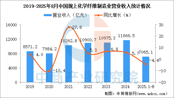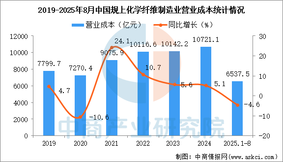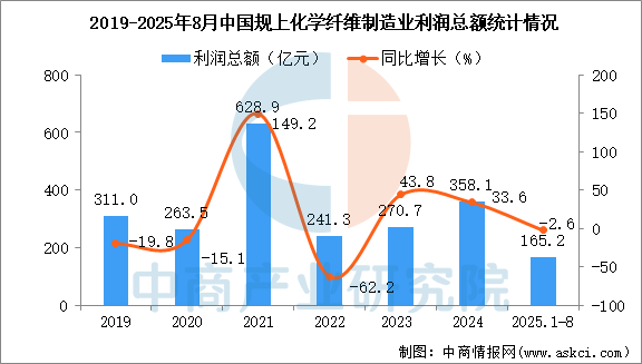 中商情報網(wǎng)訊:2025年1-8月,全國規(guī)模以上化學纖維制造業(yè)企業(yè)營業(yè)收入、營業(yè)成本出現(xiàn)同比下降,利潤總額出現(xiàn)同比下降。