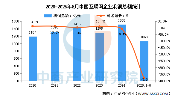 利潤總額降幅減小。1—8月份,規(guī)模以上互聯(lián)網(wǎng)企業(yè)實現(xiàn)利潤總額1063億元,同比下降3.8%,降幅較上半年縮小4.5個百分點。