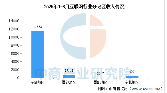 中商情報網訊:東部地區(qū)和西部地區(qū)互聯(lián)網業(yè)務收入增速較快。1—8月份,東部地區(qū)完成互聯(lián)網業(yè)務收入11573億元,同比增長4.1%;西部地區(qū)完成互聯(lián)網業(yè)務收入771.8億元,同比增長5%;東北地區(qū)完成互聯(lián)網業(yè)務收入24.7億元;中部地區(qū)完成互聯(lián)網業(yè)務收入490億元。